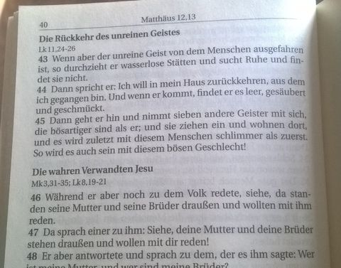 In dem Moment wie ich ihm zuhörte bemerkte ich, wie ich in Gedanken auf seltsame Weise ziemlich böse Worte über Ihn formte und selbst dabei dachte was das denn nun von mir solle. Diese Gedanken lauteten in etwa so: "...was er denn nun für eine blöde Sau wäre und was er sich denn wohl einbilde und er könnte ja wohl seine Hände ganz schnell da weg nehmen und sich verpissen.. " und es war so, dass ich selber Unverständnis über diese Gedanken hatte und mich fragte woher diese Abneigung gegenüber diesem Menschen wohl käme, denn er betete doch nur etwas Gutes für mich. Ich sah mir seine Frisur an und lauschte ob er etwas in der Stimme hat was mich vielleicht nervte und dann war diese Zeit um und der Kurstag ging ganz normal zu ende. Ich fuhr mit meiner "Kumpelfreundin" wieder nach Leer und sie berichtet mir heute, dass ich sehr aufgebracht war.. am Schimpfen am Motzen und Dinge sagte, die sie glauben ließen, das es mit mir und dem Glauben nie mehr etwas werden würde.. ich erinnere mich wohl an die Fahrt und eine gewisse Unzufriedenheit in mir im Auto, aber nicht mehr an die Worte